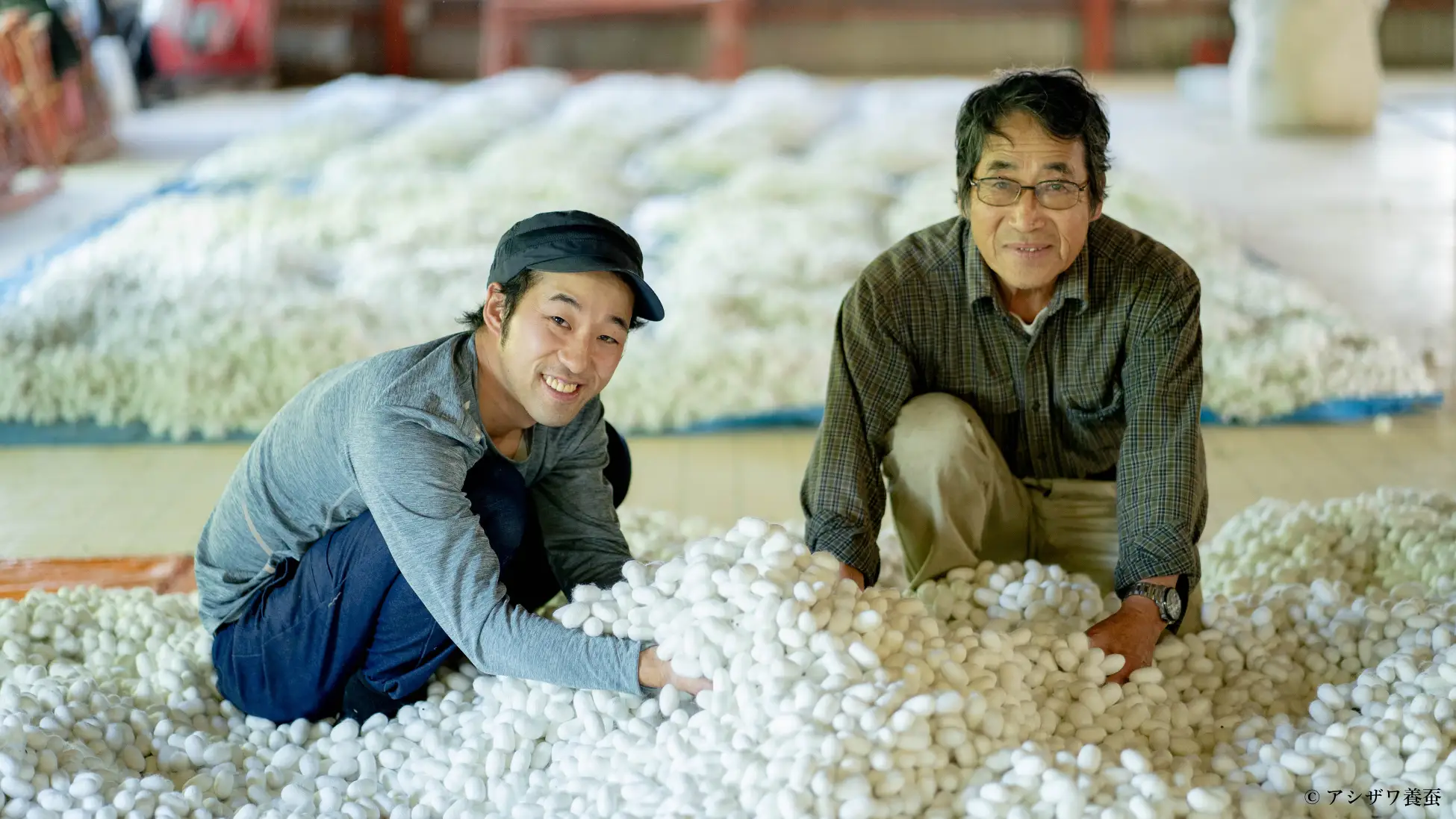 日本最大級の養蚕農家「アシザワ養蚕」で、養蚕の歴史と現場を五感で体験するスタディツアーです。桑の香りに包まれながら蚕の姿や音を観察し、繭や桑にふれて養蚕農家の仕組みを楽しく学びます。