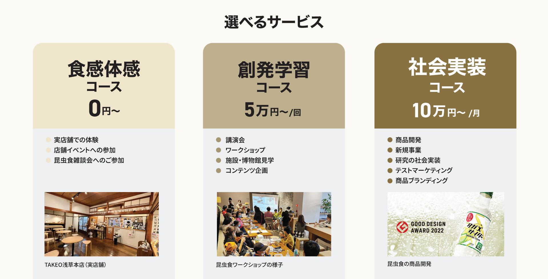 3. 社会実装コース(10万円/月〜) ー昆虫食の価値を社会に問うー
